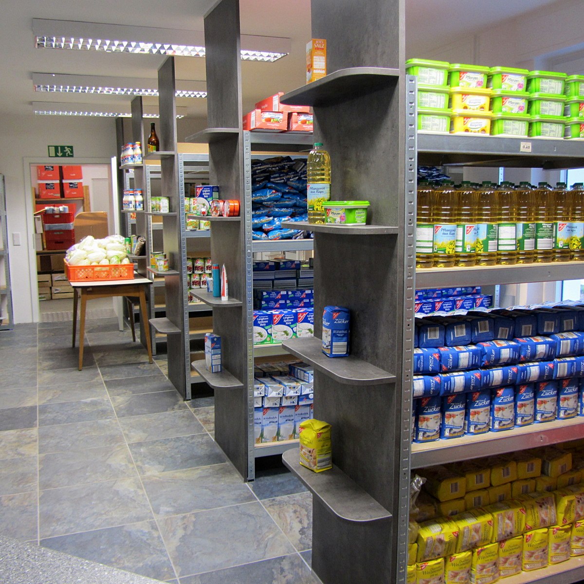 Wer den Laden betritt, steht in einem Verkaufsraum, zweckmäßig eingerichtet. Die Regale sind ordentlich, aber nicht voll – hier und da Lücken vom letzten Einkaufstag. Mehl, Reis, Konserven und Öl stehen nebeneinander. Die Lücken zeigen still, wie groß der Bedarf in Oer-Erkenschwick ist. Es ist kein Zufall, dass alles übersichtlich wirkt. Dass der Laden funktioniert, ist das Ergebnis verlässlicher Abläufe und vieler Hände, die im Hintergrund dafür sorgen, dass alles bereitsteht.
